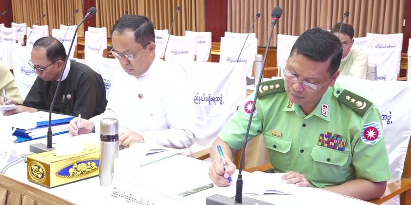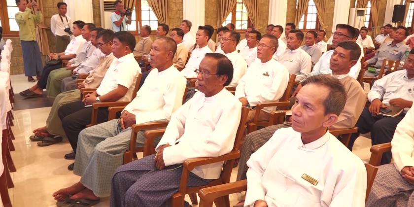 After that, the Chief Minister attended and delivered a speech at a coordination meeting held at the Rakhine State Government Office meeting hall. This meeting focused on setting local market prices for construction materials, transportation, and labor costs for the 2025-2026 fiscal year.