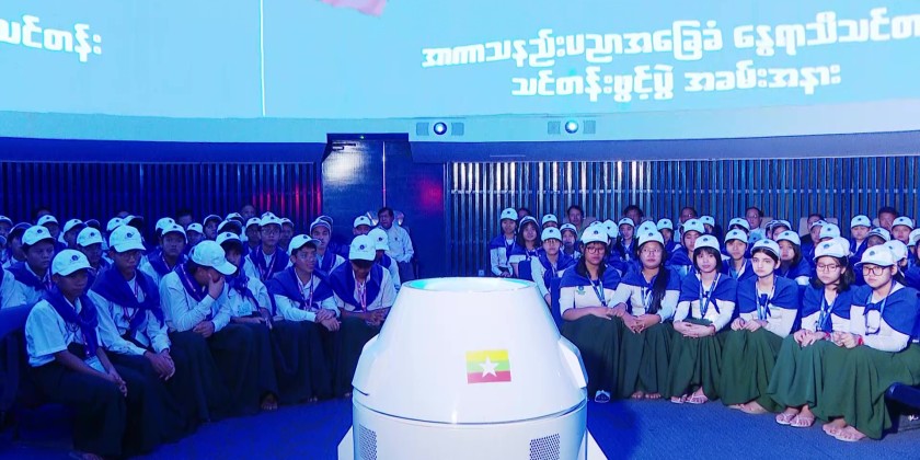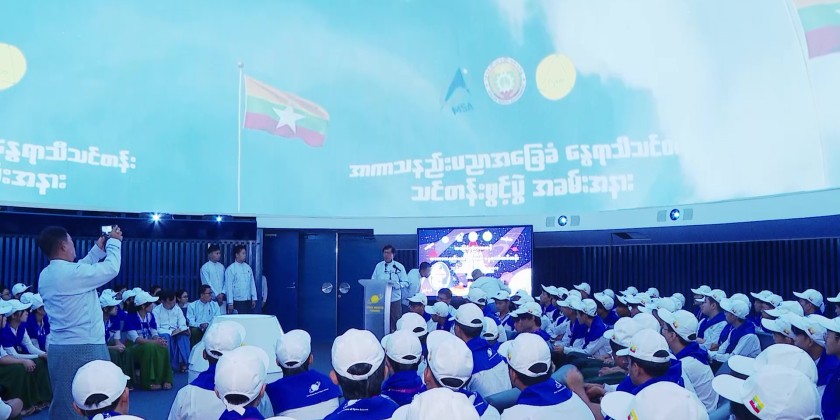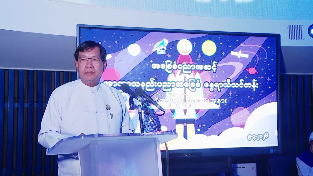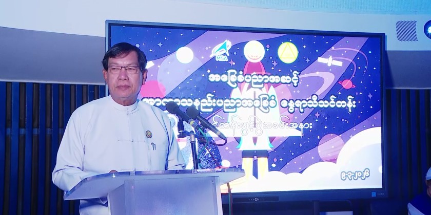 The event was attended by Yangon Region Chief Minister U Soe Thein, Myanmar Space Agency CEO Dr. Soe Myint Maung, Deputy CEO Dr. Myo Thant, members of the region government, instructors, teachers from basic education schools, students, and invited guests.