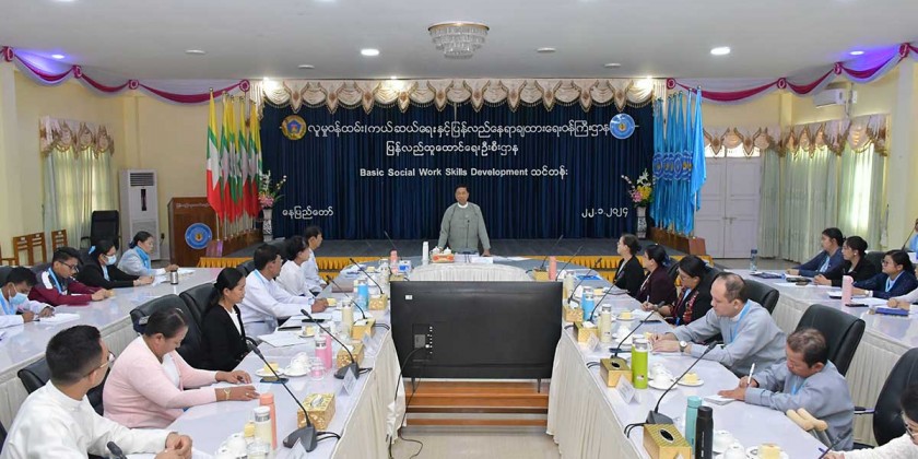 The Ministry of Social Welfare, Relief, and Resettlement inaugurated a Basic Work Skills Development Training Course on Monday. Union Minister Dr. Soe Win attended the opening ceremony and delivered a speech, emphasizing the course's objectives of enhancing rehabilitation plans, building the capacity of staff, and fostering human resource development.