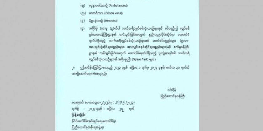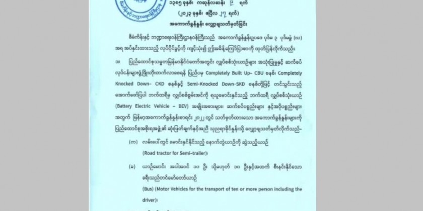 The Ministry of Planning and Finance issued notification No. 31/2023 on 27.4.2023 for Completely Build-Up (CBU), Completely Knocked Down- CKD and Semi-knocked Down- SKD systems that reduced the zero-customs tariff status.