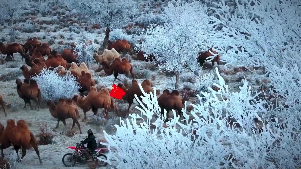 This captivating scene, with the presence of camels, has given the winter desert a romantic and lively ambiance. The municipal meteorological department predicts that the best viewing period for this round of rime will extend until around Sunday.