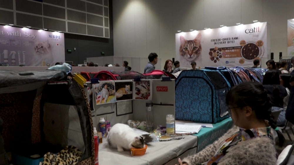 Tens of thousands of cat lovers descend on Hong Kong's Exhibition Centre for an expo dedicated to everything feline, from premium cat food, to paw imprint jewelry and fur shampoo. The three-day event included the CFA WCC Cat Show Competition.