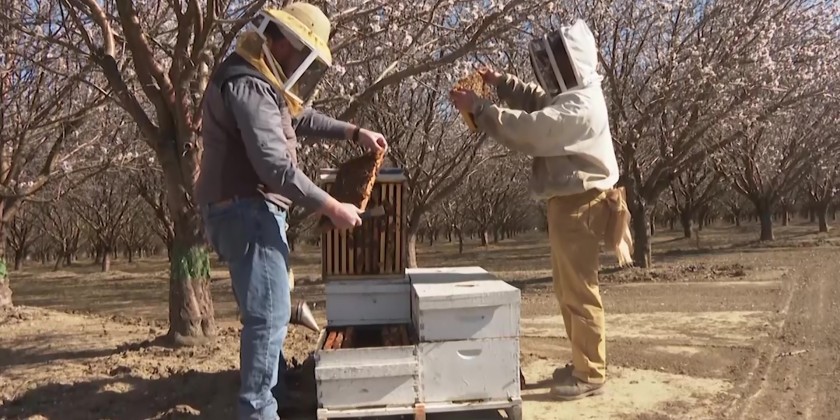 Beekeepers move truckloads of honeybees from around the United States to California to rent them out to farmers to pollinate the state's most valuable crop. But as almond flowers start to bloom this time of year, so begins beehive thefts that have become so prevalent, beekeepers are turning to technology to protect their precious colonies.