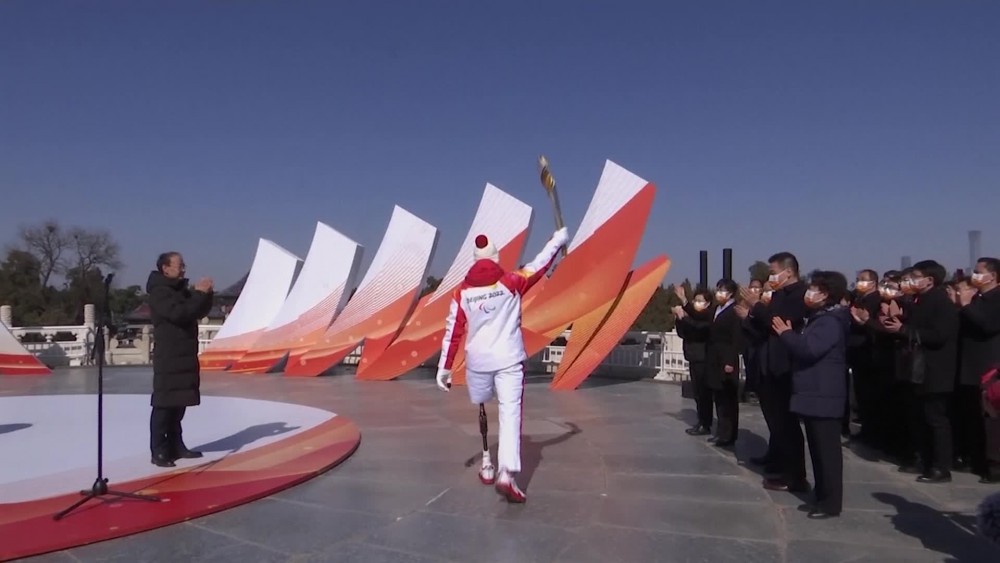 Beijing 2022 Winter Paralympics torch relay started with Paralympic flames from nine locations including the UK's Stoke Mandeville, birthplace of the Paralympics, Beijing and Zhangjiakou, at Beijing's landmark Temple of Heaven on Wednesday afternoon. As Chinese Vice Premier Sun Chunlan announced the start of the torch relay, first torchbearer and Paralympian Chen Jianxin carried the torch and forged ahead. The torch relay will continue in Zhangjiakou, Yanqing and Beijing for another two days. The 2022 Winter Paralympics will open this Friday.