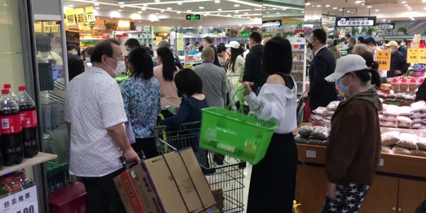 Long queues were seen in supermarkets at the city center, as shoppers snapped up rice, noodles, vegetables and other produce, while store workers hastily restocked some empty shelves.