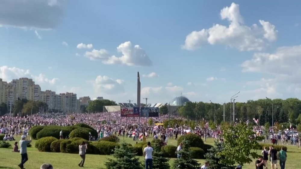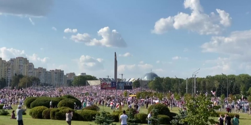 Tens of thousands of Belarusian opposition supporters gathered for the largest protest rally in recent history in Minsk on Sunday as President Alexander Lukashenko rejected calls to step down in a defiant speech. Crowds of protesters marched through the streets to the central Independence Square, estimating the turnout at more than 1,000,000, a scale of protest not seen since the breakup of the Soviet Union.