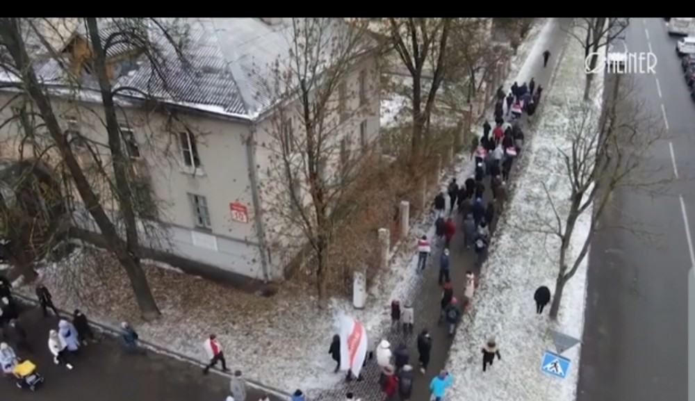 Demonstrators carrying red-and-white flags gathered in groups and marched down residential areas of the city, demanding Lukashenko's resignation. In several places, groups of protesters were led by people wearing Santa Claus costumes.