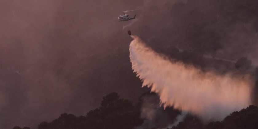 Emergency agencies deployed almost 1,000 firefighters, military personnel and support crews to fight it, as water-dropping helicopters could be seen in the area.