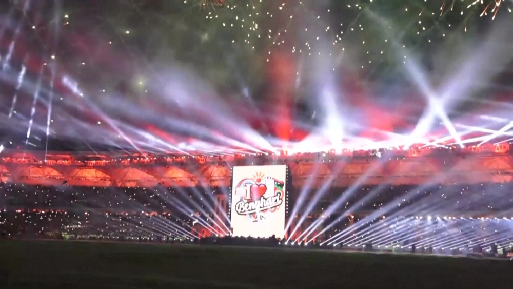 Benghazi opened its newly reconstructed international stadium with a ceremony attended by global football legends and local leaders.