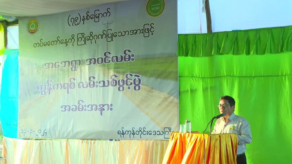 The opening ceremony of the new Abay Village entrance concerete road was held in Twantay Township to mark the 79th Anniversary of Armed Forces Day with the attendance of Yangon Region Chief Minister U Soe Thein.
