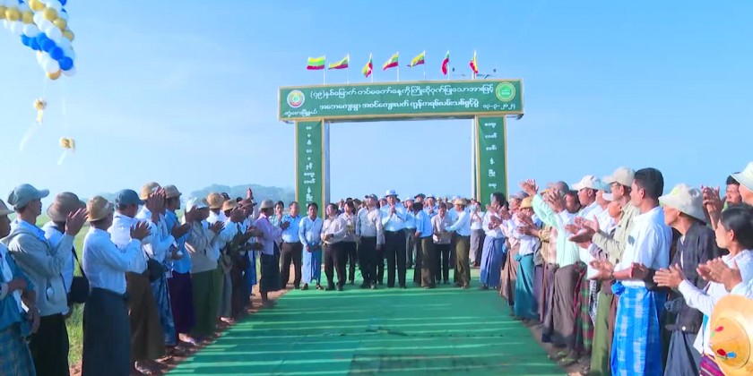 Then, the Chief Minister provided cash assistance to drum and bugle corps of No.1 Basic Education High School. Then, the new concrete road was opened by cutting ceremonial ribbons. The 2,640ft long and 12ft wide new concerete road was constructed by Soe Myanmar Aung Company with the 2023-2024 Fiscal Year Region allocated fund and it will benefit to 4,617 local residents from 1,150 households of Abay, Nyaung Kone, Sar Phyu Su, Ywar Pone, Ywar Lay, Eai Lamu and Matu Kone Villages.