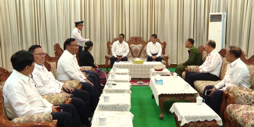 At the guest hall of Myanma Railway, the Chief Minister heard the reports on efforts to produce modern passenger coaches, upgrade railway lines and improve stations for passenger comfort and coordinated the needs. He then warmly greeted the passengers while distributing refreshments.