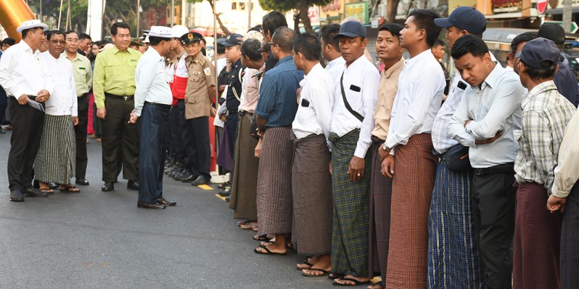 After opening the road by cutting ceremonial ribbon, Yangon Region Chief Minister U Soe Thein and party walked over the road and cordially greeted the local residents.