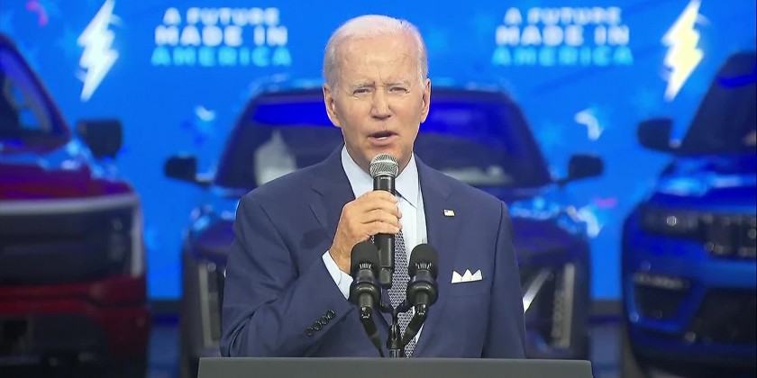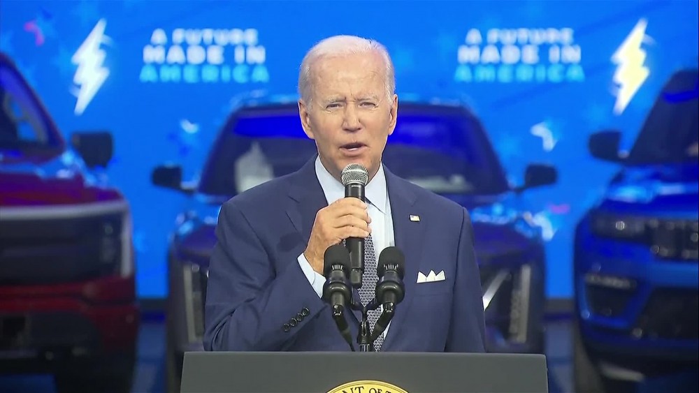 Biden announced approval of the first $900 million in infrastructure money to build EV chargers across 53,000 miles of the national highway system in 35 states. Biden's 2021 infrastructure legislation provides $5 billion over five years to help states create a network of EV charging stations. Biden traveled to the massive North American International Auto Show to plug the huge new climate, tax and health care law that offers tax incentives for buying electric vehicles. The auto companies are rolling out more affordable electric options despite battery costs.