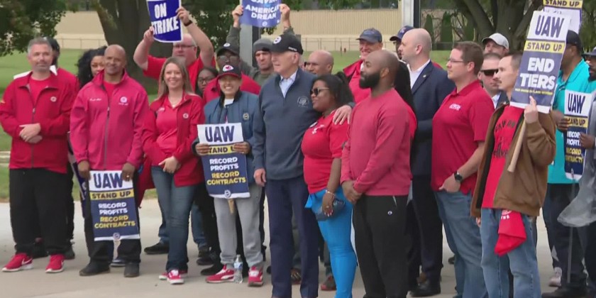 Biden told workers that the "Big Three" automakers -- Ford, General Motors and Stellantis -- were "doing incredibly well and guess what, you should be doing incredibly well too." "You deserve the significant raise you need and other benefits," he said to cheers from the crowd.