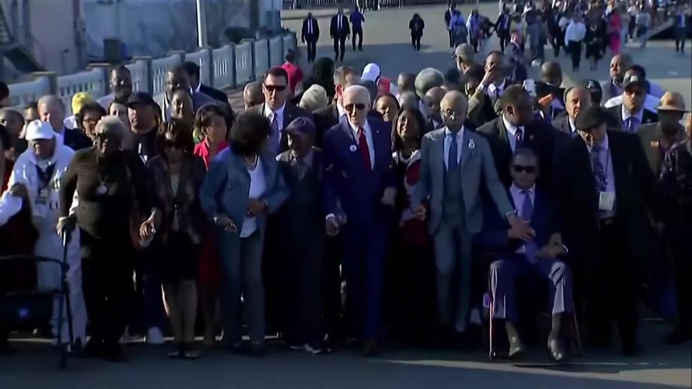 President Joe Biden is in Alabama to pay tribute to the heroes of “Bloody Sunday” in Selma. He joined thousands for the annual commemoration Sunday of the seminal moment in the civil rights movement that led to passage of landmark voting rights legislation nearly 60 years ago.