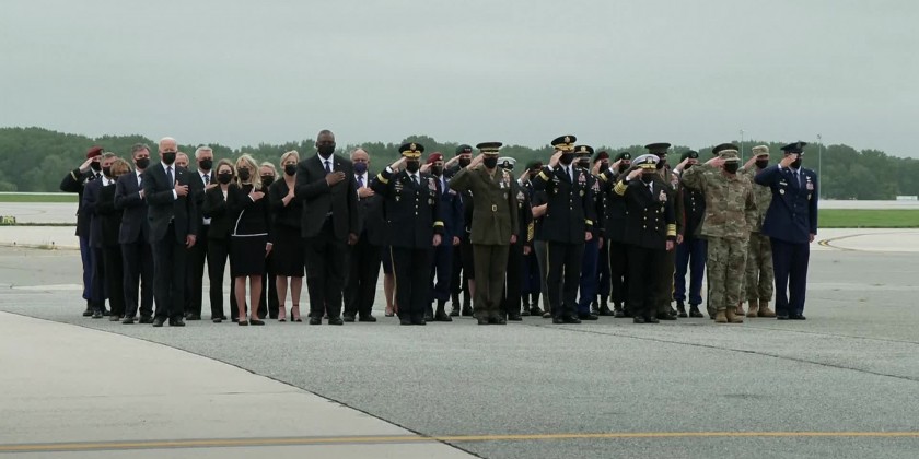 U.S. President Joe Biden on Sunday became the fourth commander in chief to bear witness as the remains of fallen U.S. troops return to U.S. soil from Afghanistan.