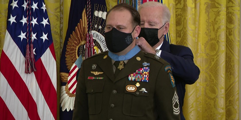 President Joe Biden presented the Medal of Honor to three soldiers on Thursday who fought in Afghanistan and Iraq. Two were recognized posthumously. The award is the nation's highest military award for valor in combat.