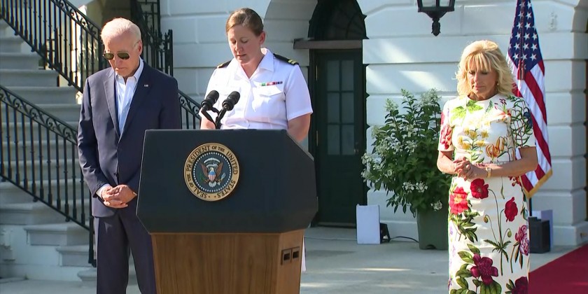 In his speech, he referred to the shooting at a 4th of July parade earlier in the day in the state of Illinois. A gunman on a rooftop had opened fire during the event in Highland Park - a suburb of Chicago.