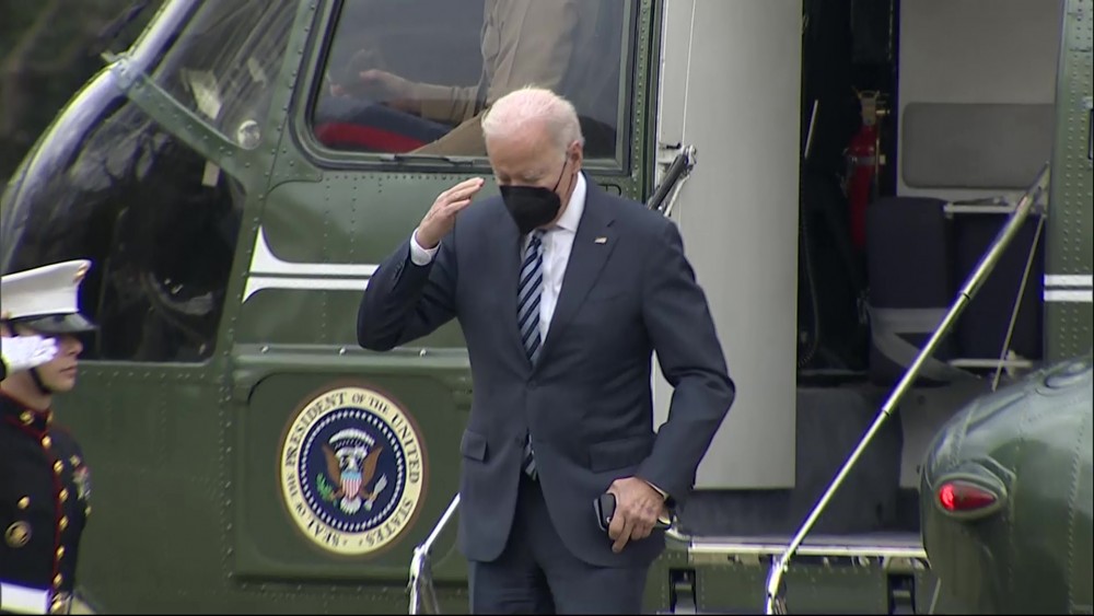 President Joe Biden returned to the White House Thursday afternoon following a quick trip to Ohio. As he wrapped up his remarks in Ohio touting new funding for the clean-up and restoration of the Great Lakes, Biden said he had to leave earlier than expected because of weather and "a little thing going on in Europe right now."