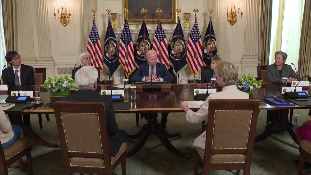 President Joe Biden met with his council of advisers on science and technology about the risks and opportunities that rapid advancements in artificial intelligence development pose for individual users and national security.
