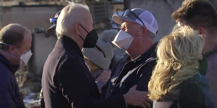 Offering hugs and humor, President Joe Biden comforted Coloradans grappling with rebuilding homes and businesses that were destroyed last week by a rare wind-whipped, winter fire that burned through a pair of heavily populated suburbs between Denver and Boulder.