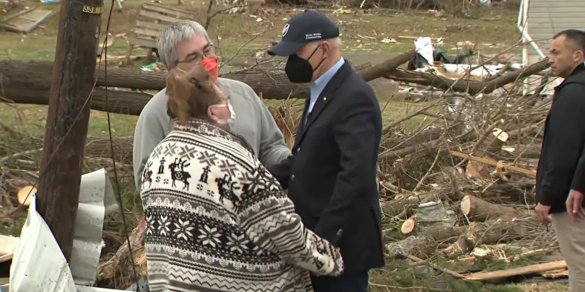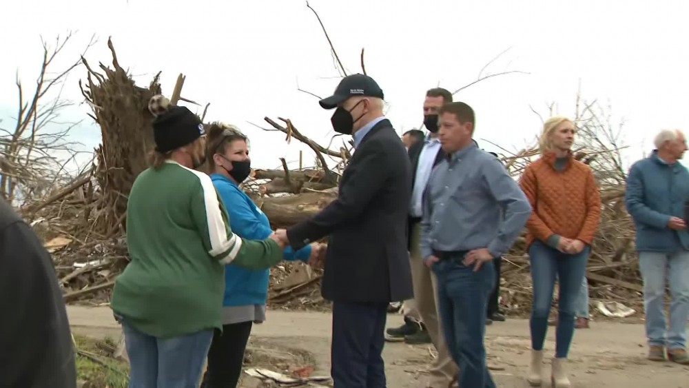President Joe Biden took a walking tour through Western Kentucky, to see firsthand the devastation caused by last week's tornadoes that tore through Kentucky and seven other states, killing at least 88 people.