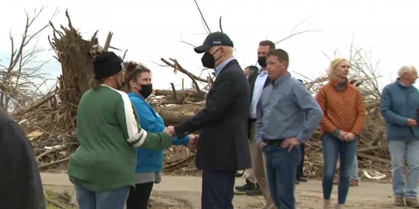 Thousands of residents have lost their houses or they were left without power. Biden walked past debris of houses which were left in ruins in Dawson Springs, hugging residents and pledging long-term federal aid to an area rendered unrecognizable. Earlier, Biden took an aerial tour of the damage and held a briefing with officials in an airport hangar. Officials say more than 30 tornadoes are responsible for the massive devastation.