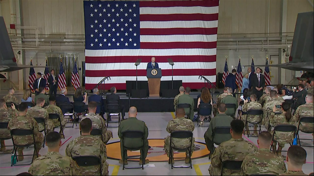 President Joe Biden travelled to Joint Base Langley-Eustis in Hampton, Virginia on Friday, to thank U.S. troops for their service ahead of the Memorial Day weekend. After beginning with an emotional remembrance of his late son Beau, a veteran, who passed away from brain cancer six years ago this weekend, Biden acknowledged the unheralded sacrifices made by the service members and their families. Biden also underscored his recent decision to pull troops out of Afghanistan later this year, expressing gratitude to service members who took multiple tours of duty in America's longest war.