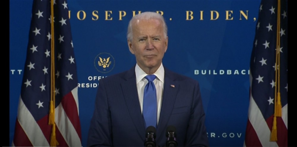 Biden also introduced Neera Tanden as his choice to run the White House budget office. He also named his chair and members of the Council of Economic Advisers. Biden unveiled his economic team amid growing concerns about the pace of the nation's economic recovery as governments reimpose restrictions to curtail the surging coronavirus pandemic.