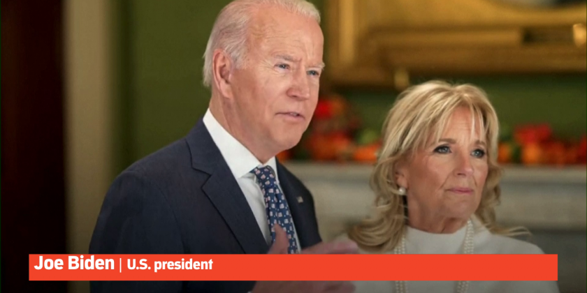 Joe Biden, U.S. president said "As we give thanks for what we have, we also keep in our hearts those who we lost and those who have lost so much and those who have an empty seat at their kitchen table or their dining room table this year because of this virus or another cruel twist of fate or accident. We pray for them."