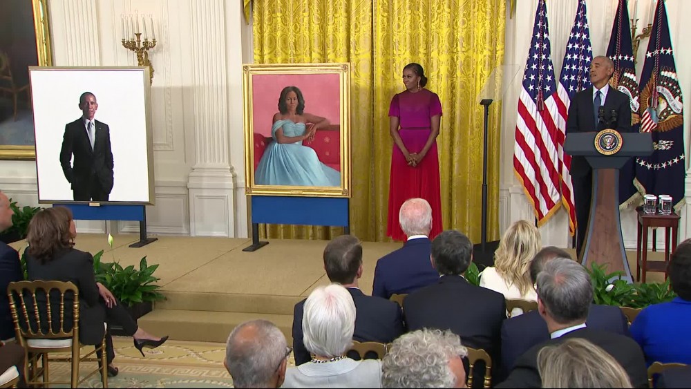 It was Mrs. Obama's first visit to the White House since Obama's presidency ended in January 2017.The artist whom Barack Obama selected to paint his portrait, Robert McCurdy, likes to present his subjects without any facial expression and standing against a white background, which is how America's 44th and first Black president will be seen for posterity, in a black suit and gray tie.The former first lady chose artist Sharon Sprung to do her portrait. She is depicted seated on a sofa in the Red Room, wearing a formal light blue dress.Donald Trump, who criticized almost everything about Obama and deviated from many presidential traditions, held no ceremony for Obama. So Biden, who was Obama's vice president, scheduled one for his former boss.