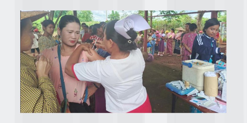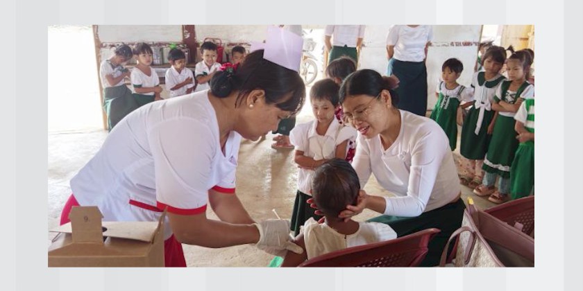As part of efforts to improve public healthcare services, the Ministry of Health is conducting special immunization activities in Naungcho Township, Northern Shan State. From July 25 to August 22, local healthcare workers vaccinated over 1,600 children under the age of 15 under the "Big Catch-Up" approach.