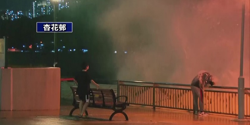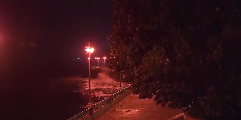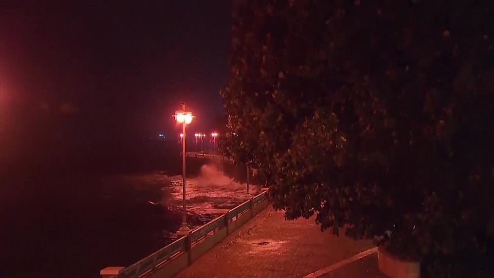 Local television showed big waves hitting exposed shorelines, spraying water over some thrill-seekers who braved the high winds to witness the extreme weather conditions.