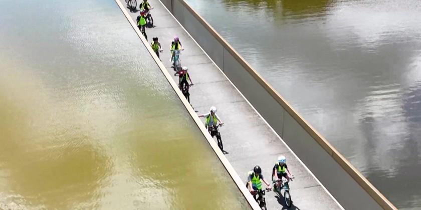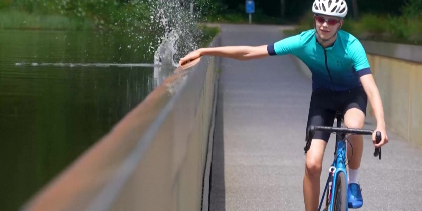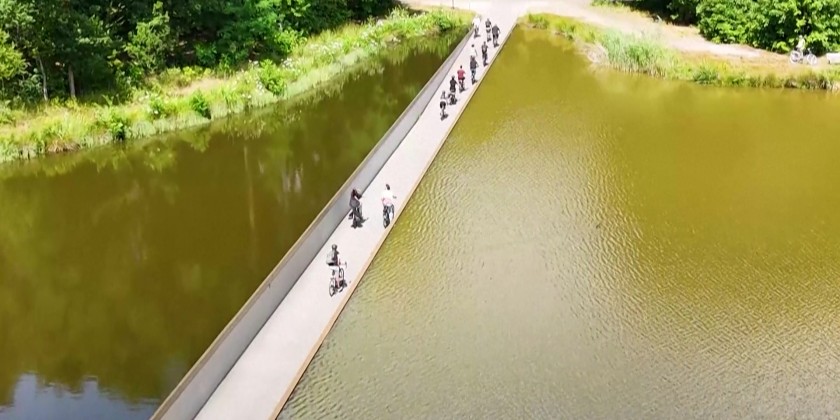 In the De Wijers nature reserve in northern Belgium, cyclists pedal through a 200-meter-long bike path separating two ponds. The attraction, called "Cycling through water", draws hundreds of cyclists and walkers every day and provides a chance to seek relief from the summer heat. Constructed in 2016, the route provides an unusual sensation to visitors as they find themselves at eye level with the water.