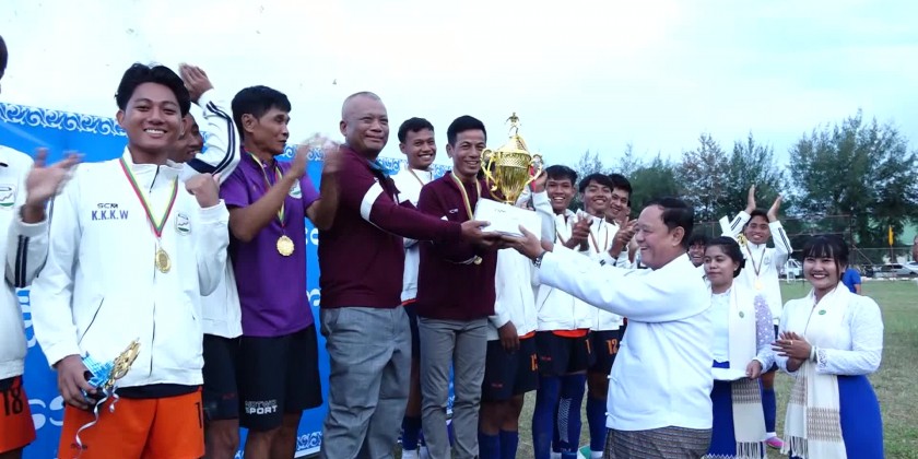 After the concluding of third place play-off and final match, the prize awarding ceremony was held and the Directors General, Permanent Secretary, Deputy Minister U Myit Soe awarded the medals, trophy of honor and cash prizes for the best players at the relevant places, third prize winner team of the Department of Rural Development and second prize winner team of Department of Small-Scale Industries.