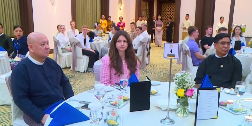 In the evening, at the Jasmine Naypyitaw Hotel, the Union Minister for the Ministry of Religious Affairs and Culture, U Tin Oo, hosted a dinner in honor of the delegation and presented commemorative bouquets as gifts.