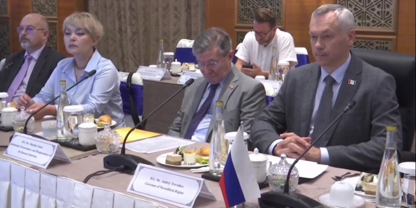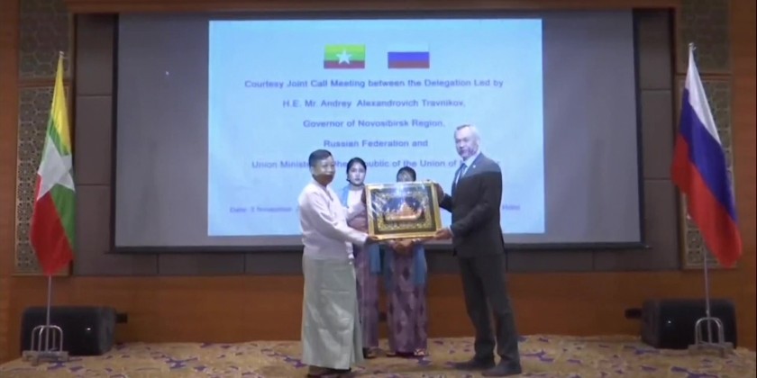 Following the discussions, the Union Minister for Religious Affairs and Culture presented a commemorative gift, which was accepted by the Governor of the Novosibirsk Region of the Russian Federation. The meeting was also attended by Deputy Ministers U Ko Ko Kyaw, Daw Nu Mya Zan, and U Phyo Zaw Soe, along with responsible officials and delegation members from the respective ministries.