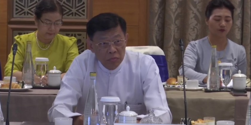 Union Minister for Transport and Communications U Mya Tun Oo and Union Minister for Religious Affairs and Culture U Tin Oo Lwin received a delegation led by Mr. Andrey Travnikov, Governor of the Novosibirsk Region of the Russian Federation and held a meeting at the Jasmine Naypyitaw Hotel in Nay Pyi Taw on November 3.
