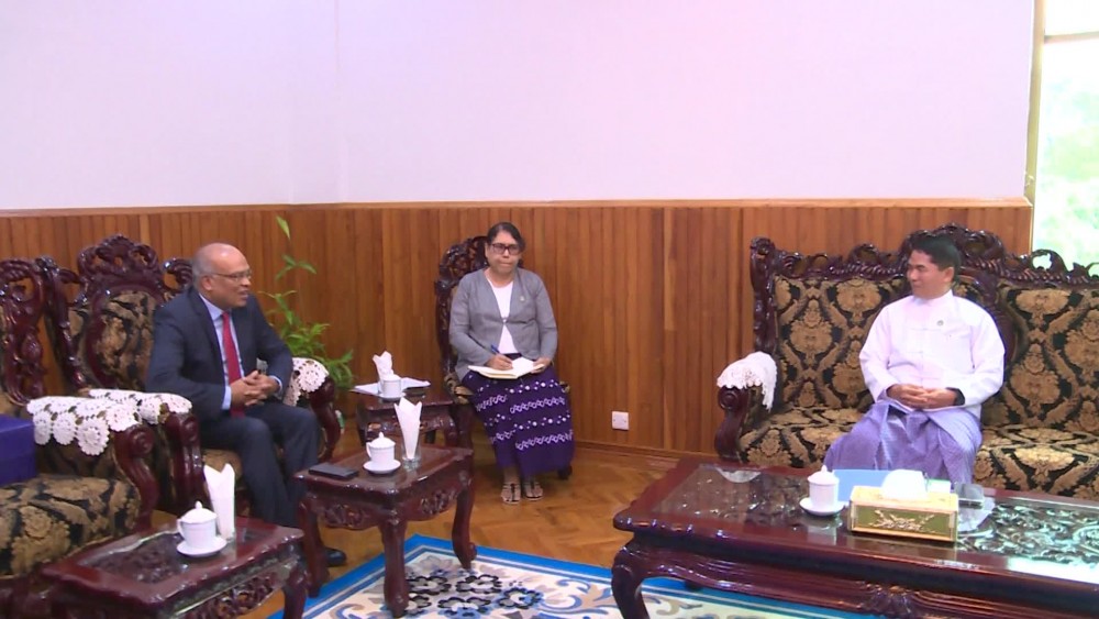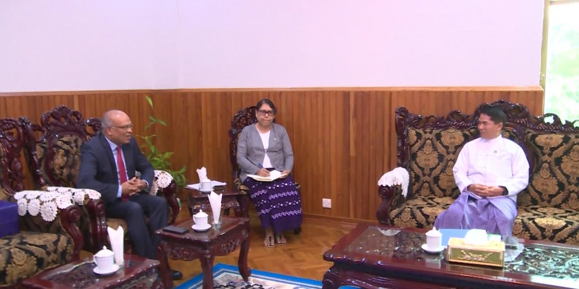 Union Minister for Agriculture, Livestock and Irrigation U Min Naung met with Ambassador of Bangladesh to Myanmar Dr. Md. Monwar Hossain at his office on Thursday.