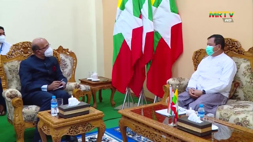 The Union Minister for Electricity and Energy U Aung Than Oo received the newly appointed India Ambassador to Myanmar H.E. Mr. Vinay Kumar at the Ministry, Nay Pyi Taw on April 6.