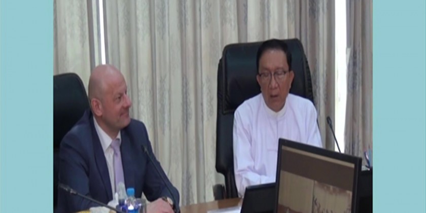 The Union Minister for Planning and Finance U Win Shein received a delegation led by the leader of the office of the secretary of Eurasian Economic Commission Mr. Andrey DIANSKY at the ministry, Nay Pyi Taw on 25th March.