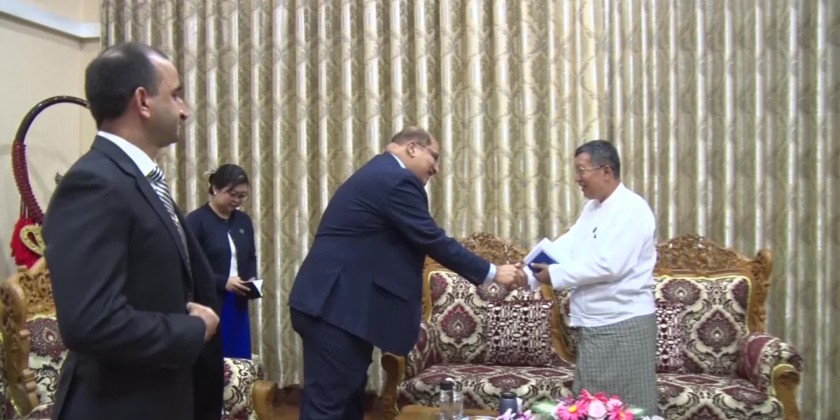 Union Minister for Religious Affairs and Culture U Tin Oo Lwin received Pakistani Ambassador to Myanmar Mr. Imran Haider at the Ministry in Nay Pyi Taw on 25th July.