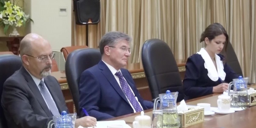 Union Minister for Natural Resources and Environmental Conservation U Khin Maung Yi on Thursday afternoon received the Russian Ambassador to Myanmar Mr. IskanderAzizov at his Ministry in Nay Pyi Taw.