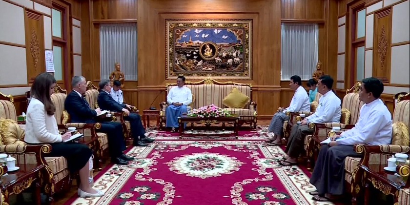 The National Security Advisor and Union Minister at the State Administration Council Chairman’s Office Ministry (4) Admiral Moe Aung received the delegation led by Ambassador of the Russian Federation to the Republic of the Union of Myanmar H.E.Mr. Iskander Azizov at the State Administration Council office in Nay Pyi Taw on Tuesday afternoon.
