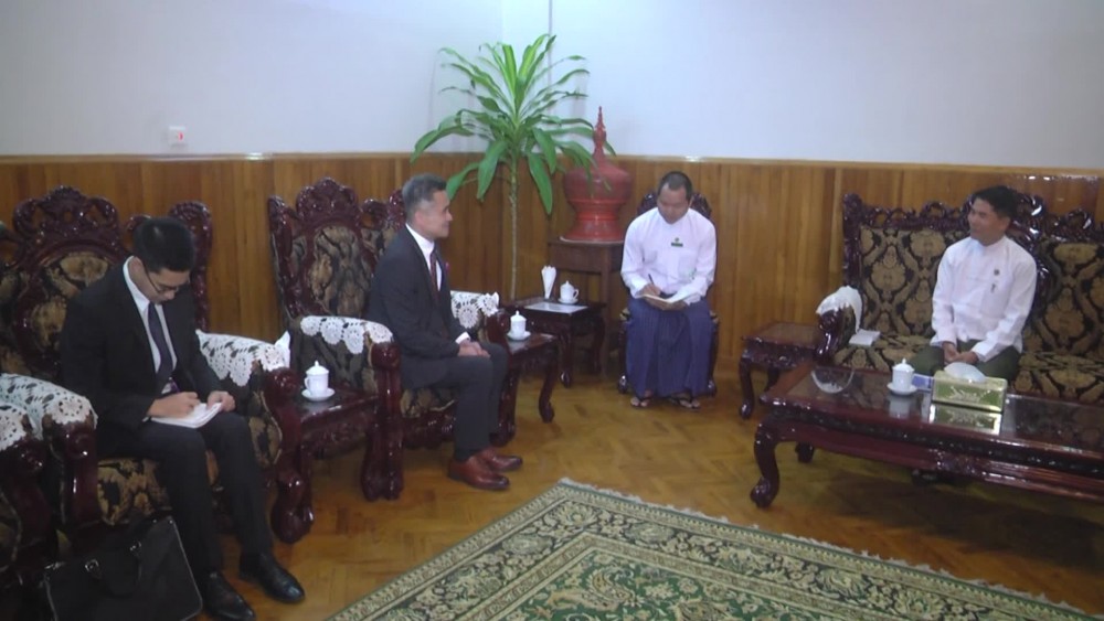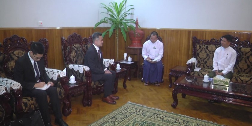 Union Minister for Agriculture, Livestock and Irrigation U Min Naung together with officials received Thai Ambassador to Myanmar Mr. MongkoiVisitstump at the Union Minister’s office in Nay Pyi Taw on Tuesday and discussed development of the two countries, boosting cooperation in agriculture and livestock sectors.