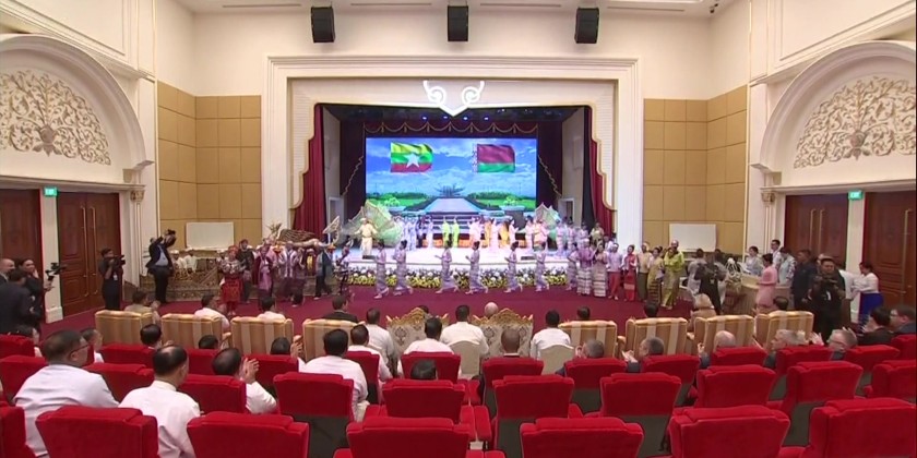 After the meeting, the Acting President and the visiting Belarusian President held a media briefing on joint declaration. Then, a luncheon was hosted in honour of the visiting delegation led by the President of Belarus. The Guard of Honour played the national anthems of the two countries, followed by the performance of Myanmar and Belarus songs by artistes from the Fine Arts Department and Myawady Music Band.