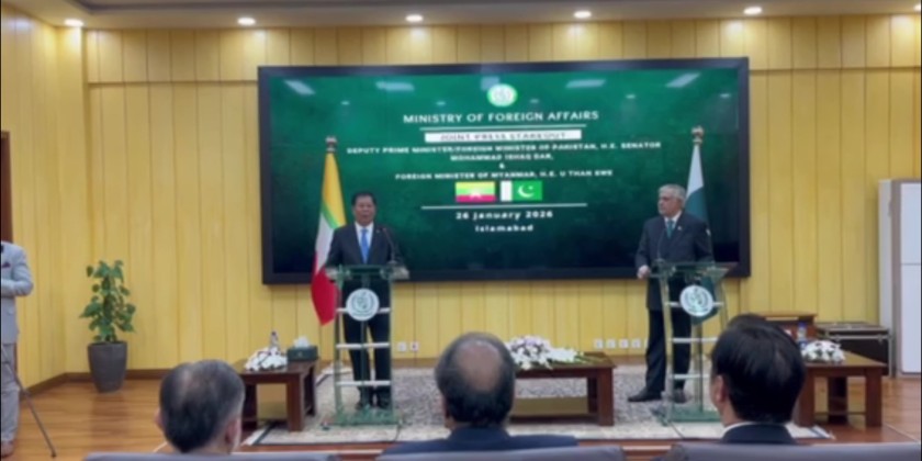 At the invitation of Mr. Mohammad Ishaq Dar, Deputy Prime Minister and Minister for Foreign Affairs of the Islamic Republic of Pakistan, a Myanmar delegation led by U Than Swe, Union Minister for Foreign Affairs, currently on an official visit to Pakistan, held a bilateral meeting with the Pakistani delegation led by the Deputy Prime Minister and Minister for Foreign Affairs on 26 January 2026.