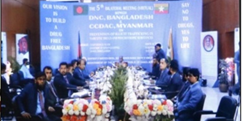 The Bangladesh delegation led by the Director General of Department of Narcotics Control (DNC) Md. Abdul WahhabBhuiyan and Myanmar delegation led by Joint Secretary of the Central Committee on Drug Abuse Control, Commander of the Drug Enforcement Division Police Brig-Gen Win Naing attended the meeting through video conferencing.Delegates from the two countries discussed Experiences and challenges encountered in solving the problems, drug seizure cases, issues that will be cooperated between the two countries, information exchange in a timely manner, joint patrolling and holding the 6th meeting by Bangladesh.