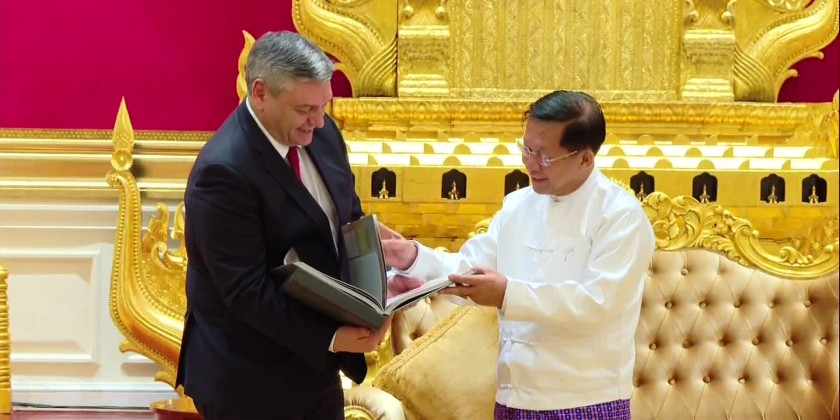 A delegation led by H.E. Mr. Andrey Rudenko Deputy Minister of Foreign Affairs of the Russian Federation paid courtesy call to the Chairman of the State Administration Council Prime Minister Senior General Min Aung Hlaing at the Credentials Hall of the SAC Chairman Office in Nay Pyi Taw in the afternoon on 20th February.
